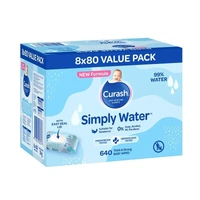 Curash Simply Water Wipes 80x8 pack